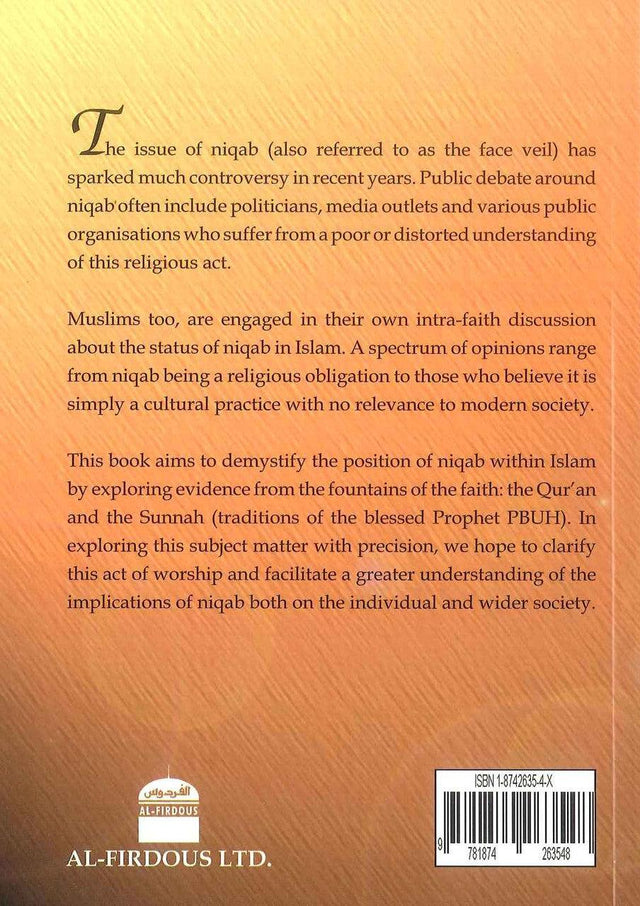 This book aims to demystify the position of niqab within Islam by exploring evidence from the fountains of the faith: the Quran and the sunnah (traditions of the blessed prophet (PBUH). In exploring this subject matter with precision, we hope to clarify this act of worship and facilitate a greater understanding of the implications of niqab both on the individual and wider society.
