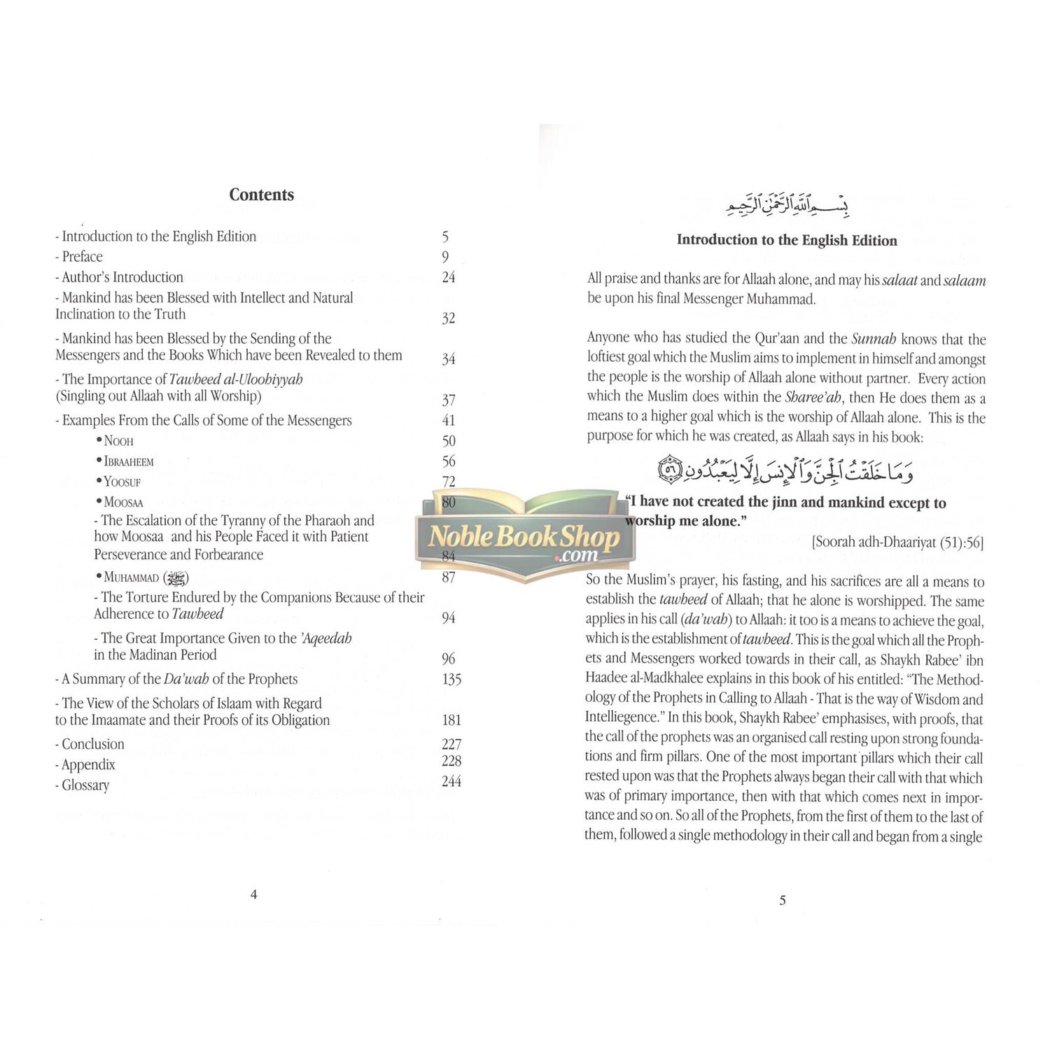 The Methodology of the Prophets in Calling to Allah - That is the Way of Wisdom & Intelligence Calling to Allah is a very great honour which is not reached through ease, response and love of relaxation. It is not reached except through beneficial knowledge, righteous actions, deep understanding and careful following of the way of the Prophets in calling to Allaah. In this book Shaykh Rabee' ibn Haadee al-Madkhalee explains in detail the methodology of the Prophets in their call to Allaah. In it, he answers those questions which face every caller to the faith who wishes to follow the footsteps of the Prophets: What should his call begin with? What should he concentrate on? And what is the goal of his da'wah to Allaah? After discussing the methodology of the Prophets in calling to Allaah, he compares it with the different methodologies employed by various contemporary da'wah groups and movements that have arisen in our time and highlights the stark contrast between these new, innovated methodologies and the pure and perfect Prophetic way. This book is an important guide for all those active in the field of da'wah, giving them an insight into the methodology of da'wah which the Propehts employed and how it is a divine and precise methodology which leaves no room for personal opinions, experimentation of individual inclinations!