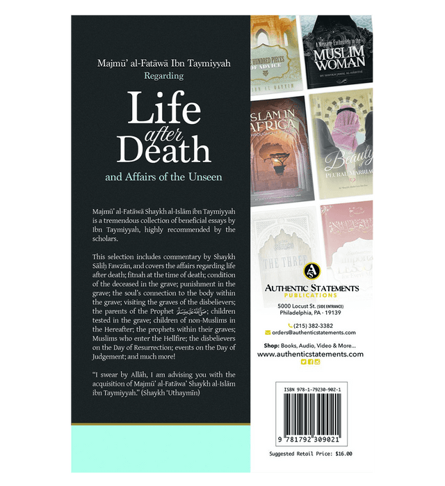 Majmū’ al-Fatāwā Shaykh al-Islām ibn Taymiyyah is a tremendous collection of beneficial essays by Ibn Taymiyyah, highly recommended by the scholars. This selection includes commentary by Shaykh Sāliḥ Fawzān, and covers the affairs regarding life after death; fitnah at the time of death; condition of the deceased in the grave; punishment in the grave; the soul’s connection to the body within the grave; visiting the graves of the disbelievers; the parents of the Prophet ﷺ; children tested in the grave; children of non-Muslims in the Hereafter; the prophets within their graves; Muslims who enter the Hellfire; the disbelievers on the Day of Resurrection; events on the Day of Judgement; and much more! “I swear by Allāh, I am advising you with the acquisition of Majmū’ al-Fatāwa’ Shaykh al-Islām ibn Taymiyyah.” (Shaykh ‘Uthaymīn)