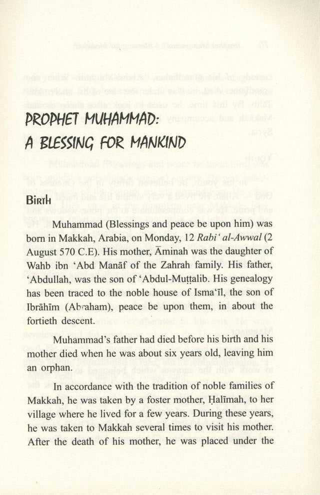 Prophet Muhammad صلی الله علیه وآله وسلم and the lessons he taught us from the continued hardships he underwent in every stage of his life are a real blessing for humankind. Being an orphan child made him compassionate to widows and orphans as well as to the poor. His multiple marriages strengthened the ties of kinship amongst the different tribes, dissolving long-standing enmity. His message and prophet-hood were challenged by the polytheistic society in Makkah, forcing him and his few followers to emigrate to Madinah. Despite his illiteracy and the struggles he faced, he conveyed ALLAH's Book, the Noble Qur’an, to all humanity, teaching them the values and principles that are presently adopted by billions of Muslims throughout the world. In the Qur’an, ALLAH, the Almighty addresses the Prophet صلی الله علیه وآله وسلم, saying: {we have sent you only as a mercy to the worlds.} (Qur’an 21: 107)/font>