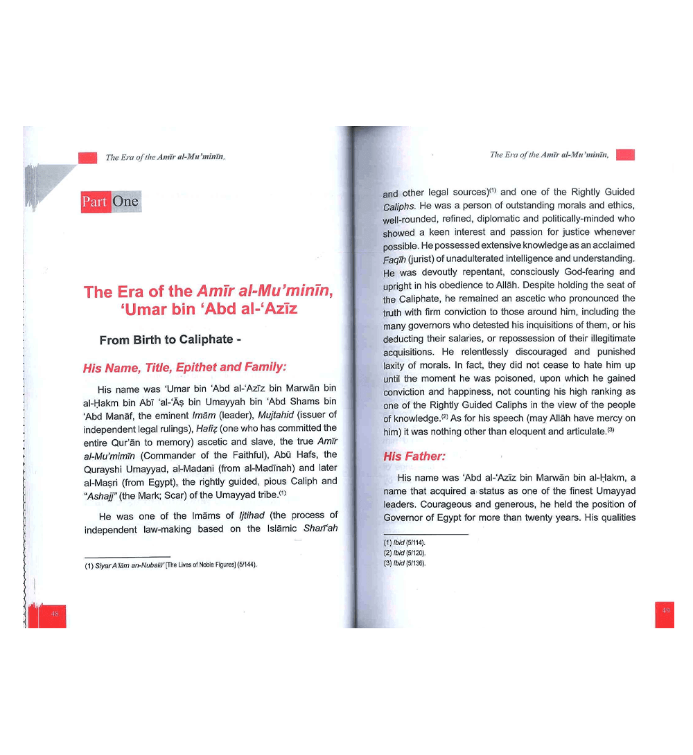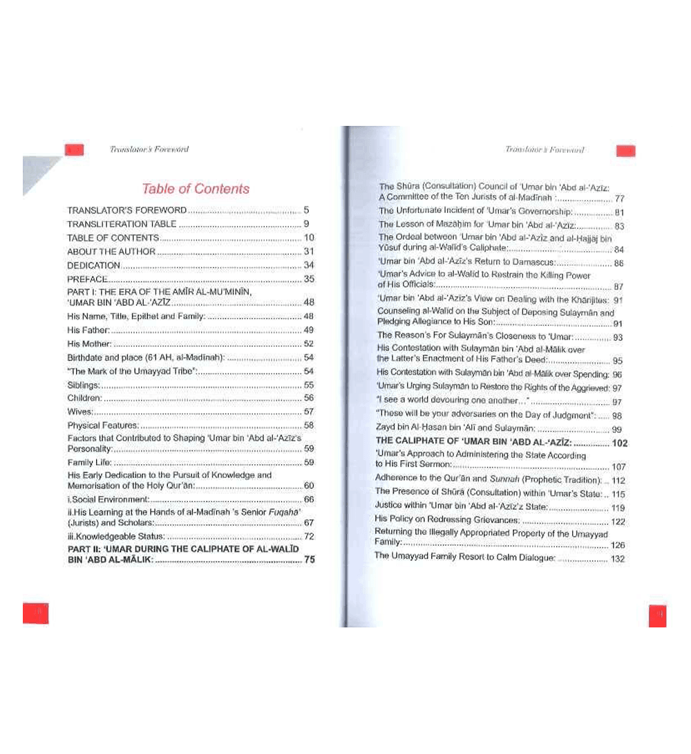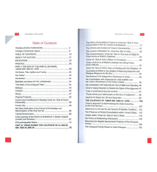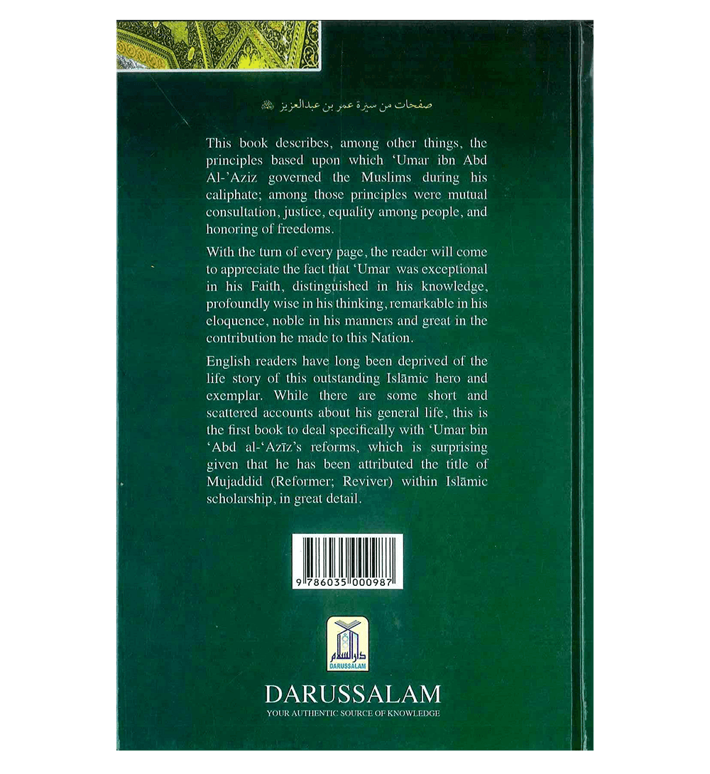 This book describes, among other things, the principles based upon which Umar Bin 'Abd Al-'Aziz رضی الله عنهُ governed the Muslims during his caliphate; among those principles were mutual consultation, justice, equality among people and honouring of freedoms. With the turn of every page, the reader will come to appreciate the fact that 'Umar Bin 'Abd Al-'Aziz رضی الله عنهُ was exceptional in his Faith, distinguished in his knowledge, profoundly wise in his thinking, remarkable in his eloquence, noble in his manners and great in the contribution he made to this Nation. English readers have long been deprived of the life story of this outstanding Islamic hero and exemplar. While there are some short and scattered accounts about his general life, this is the first book to deal specifically with Umar Bin 'Abd Al-'Aziz رضی الله عنهُ reforms, which is surprising given that he has been attributed the title of Mujaddid (reformer/reviver) within Islamic scholarship, in great detail.