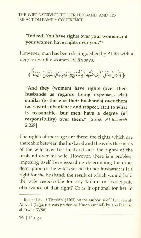 what is reasonable, but men have a degree (of responsibility) over them.”[Sūrah