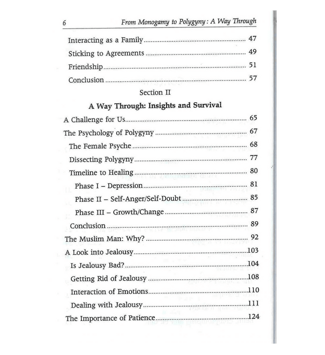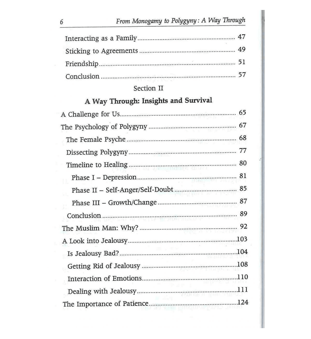 From Monogamy to Polygyny: A way Through addresses the deep and complex issues and concerns that Muslim women worldwide have with polygmy. The insight offered by this book is new, unique,and encouraging, practical advice is brought forth to aid in moving past the negative feelings that are commonly associated with polygyny, ultimatley helping the muslim woman progress to a higher level of Iman. InshaAllah. Rich with understanding, comfort, advice, motivation, clarity, examples, experiences, and answers a way through I spaced for the Muslim woman, making polygyny easier, or at the very leasts more endurable. Although this book is geared mainly towards women, its vast content can give men insight into the emotional affects of polygyny on women, which they can use to make sound and wise decisions. Overall, this is a valuable resource for both Muslim man and Muslim women considering, dealing with, questioning, and pondering polygyny.