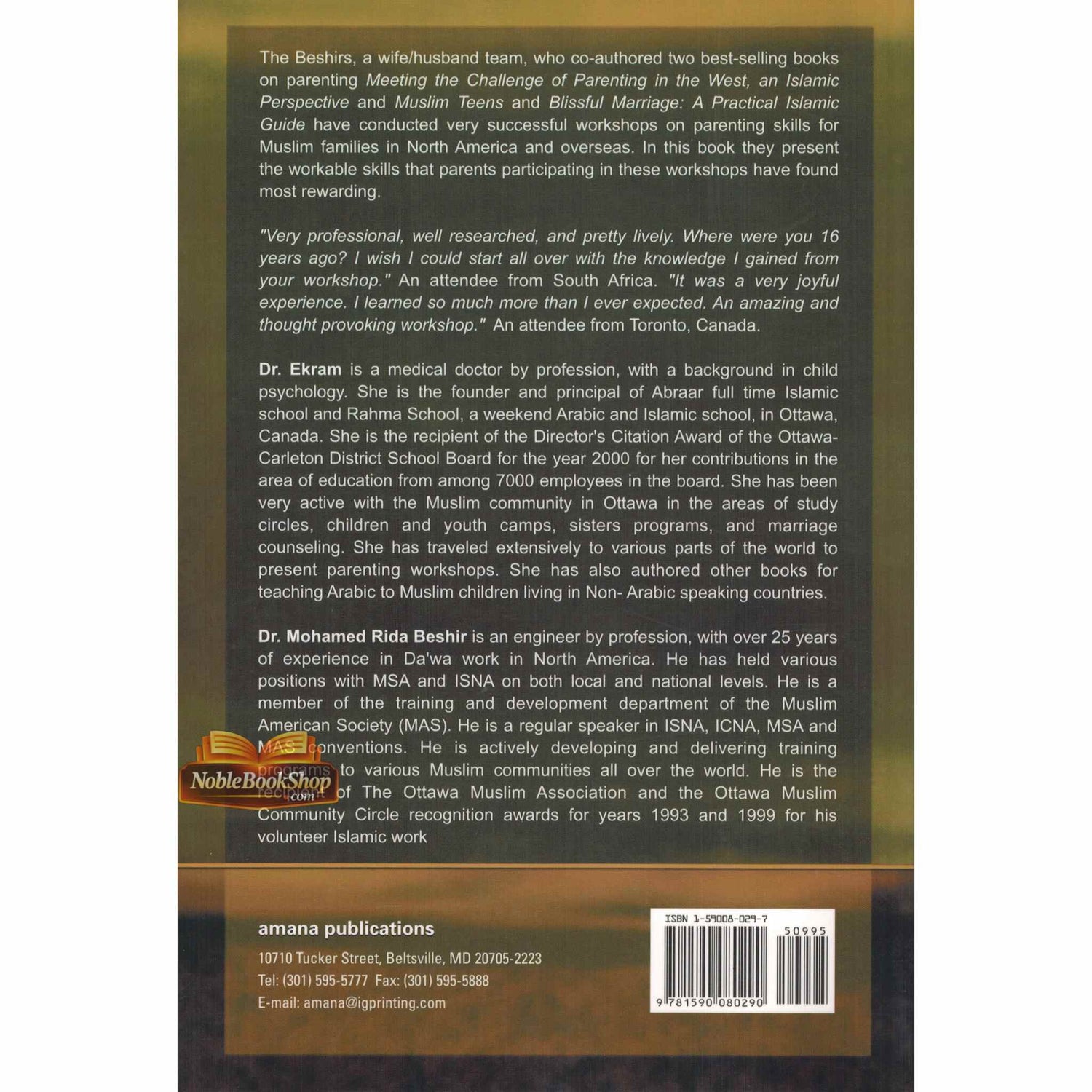 As a sequel to their best seller, Meeting the Challenges of Parenting in the West, the Beshirs in their latest book Parenting Skills help parents acquire positive parenting skills and provide them with the most effective and efficient parenting methods for their children. They achieve this by giving them strong knowledge of both the objectives of parenting, and its basic principles in accordance with the Qur’an and the teachings of Prophet Muhammad. This book contains a great portion of the material presented by the authors in one of the most successful parenting workshops in the world.