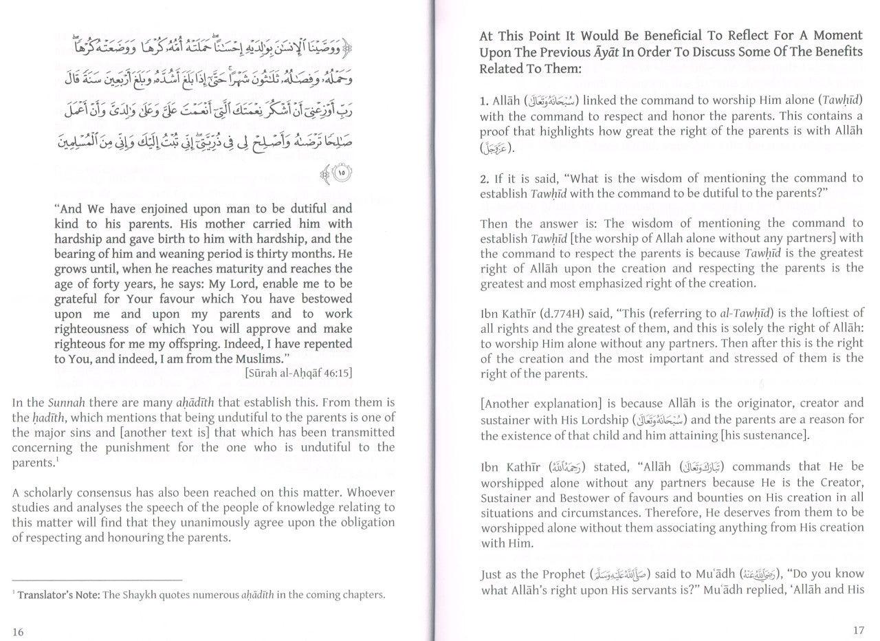 Dr. Muhammad Bazmul, a professor at Umm al-Qura University in Makkah al-Mukarramah, discusses the topic of parents' rights at length in this vital edition to the authentic Islamic literature. The following topics are covered: " The Ruling of Respecting the Parents. " The Virtue, Fruit and Benefit of Respecting the Parents. " The Punishment for Being Undutiful to the Parents. " The Way to be Respectful to the Parents. " Various Issues and Rulings pertaining to Respecting the Parents.