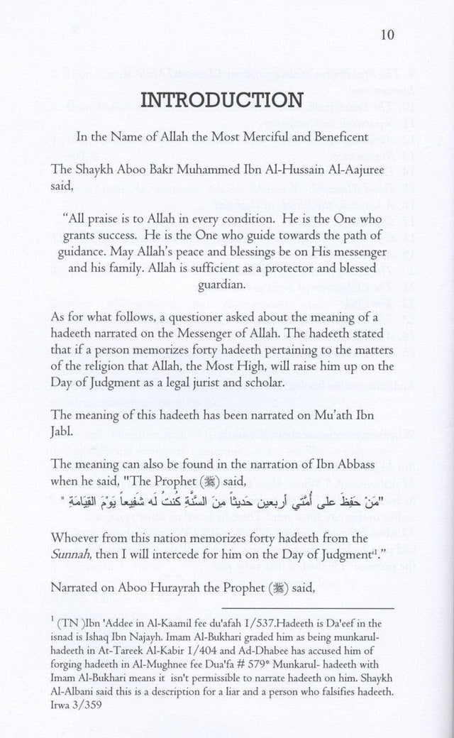 Forty Hadeeth (Al AAjuree) is backordered and will ship as soon as it is back in stock.