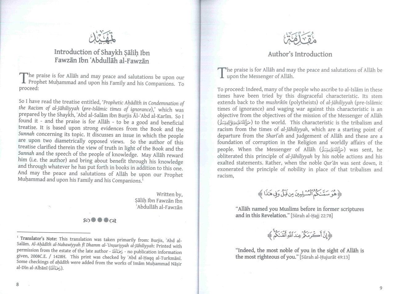 10B Generation after generation was destroyed by wars because a man would seek the aid of his tribe, even if he was upon falsehood and the likes of that from trivial causes and despicable motives. So Islam came to erase all of these loathsome outward practices in their lives when it made them equal with regards to the rights, and it made their slogans of allegiance to, al-Islam. And Islam made them excel over one another due to taqwa; (righteousness) and obedience to Allah. So there is no excellence for an Arab over a non-Arab, nor is there any excellence for a non-Arab over an Arab, nor for a white person over a black one, nor for a black person over a white one, except due to taqwa.