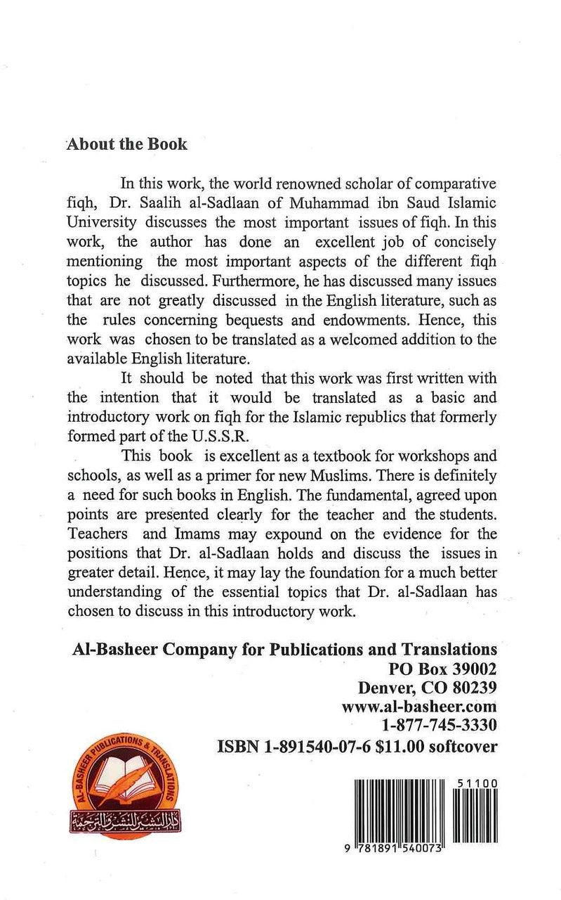 SL: 01AL2 In this work the world renowned scholar of comparative fiqh , Dr. Saalih al - Sadlaan of Muhammad Ibn Saud Islamic university discusses the most important issues of fiqh. In this work, the author has done an excellent job of concisely mentioning the most important aspects of the different fiqh topics he discussed furthermore, he has discussed many issues that are not greatly discussed and endowments.