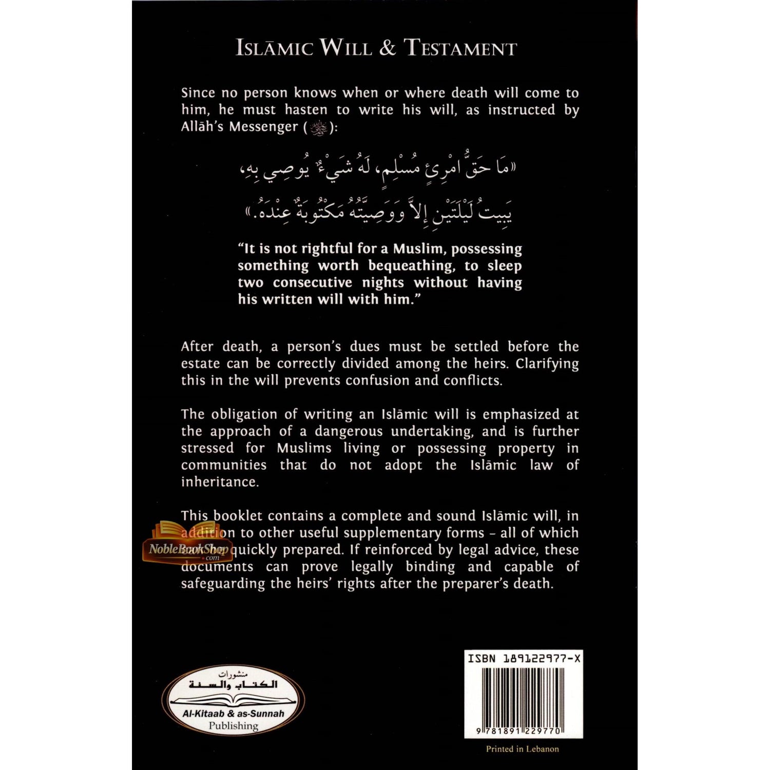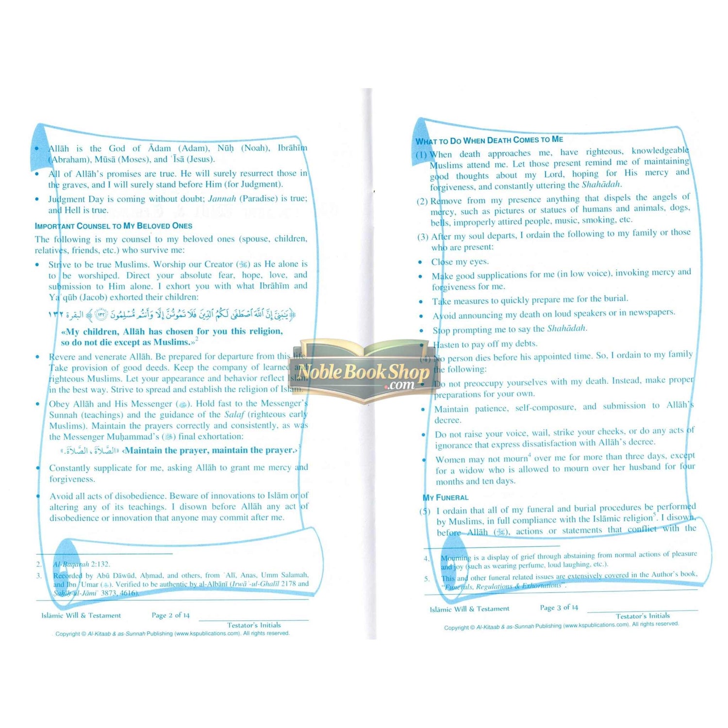 This is a complete Islamic will & testament, with charts for inheritance, Qur'anic injunctions as well as Shari'ah compliant procedures, dos and don'ts, and more.