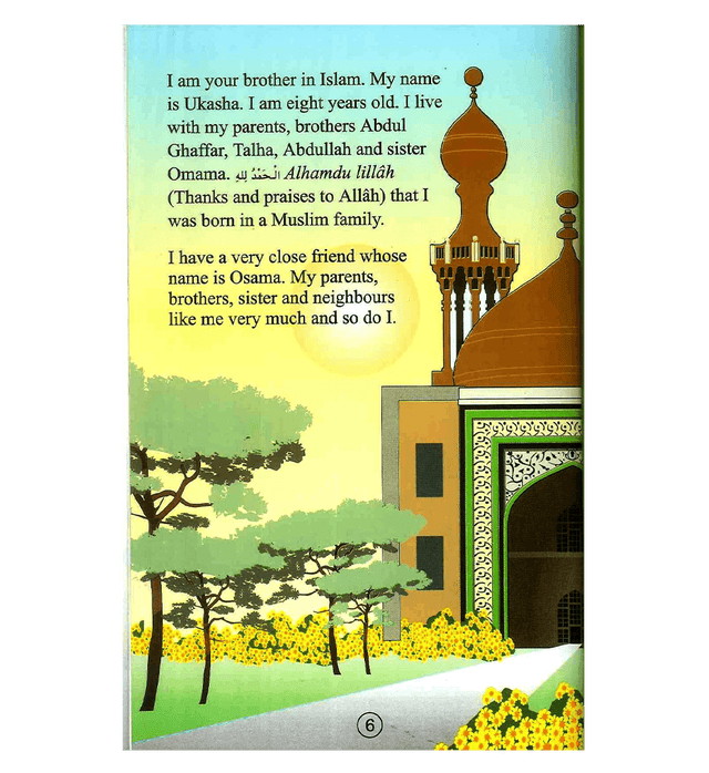 SL:04CL2 This beautiful book describes a day in the life of a Muslim Child. From waking up to going to bed at night it goes over all the basic dua's that should be recited in our daily lives. It includes dua's for waking up, leaving/entering the restroom, before/after eating and those needed through out the day. The whole book is told from Ukasha?s point-of-view in a story like manner.