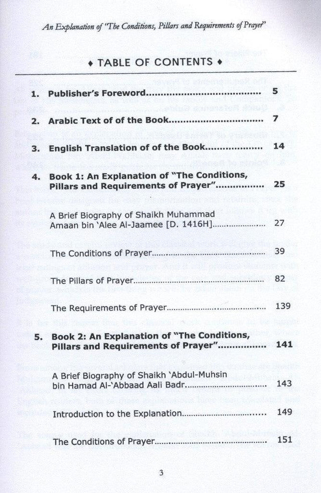 SL: 00000 Before you is an explanation of one of the classical works on prayer and ablution written by the Imaam and Mujaddid of the 13th century, Muhammad bin Abdil-Wahhaab, may Allaah have mercy on him. This book: "The Conditions, Pillars and Requirements of Prayer" is a brief treatise designed for easy memorization and retaining since the author lists each point briefly followed by its proof from the Qur'an and Sunnah. The study and careful review of this classical work will give the reader a concise and general understanding of the basic fundamentals and legal rulings of ablution and prayer and produce students with firm knowledge of the core and subsidiary issues of prayer, which is the first thing we will be asked about on the Day of Judgement. It is for this reason that this classical work continues to be taught today all over the world. From among the several scholars that explained this treatise are Shaikhs Muhammad Amaan Al-Jaamee and ‘Abdul-Mushin Al-‘Abbaad. In an effort to bring as much benefit as possible to the English readers, both of these explanations have been translated and included in this book. About the Authors: Shaikh Muhammad Amaan Al-Jaamee [1416H] and Shaikh Abdul-Muhsin Al-Abbaad are two of the well-known scholars of this century, based in Saudi Arabia, who are known for their sound knowledge, upright creed and firm methodology. Extensive biographies for each author can be found within this publication.