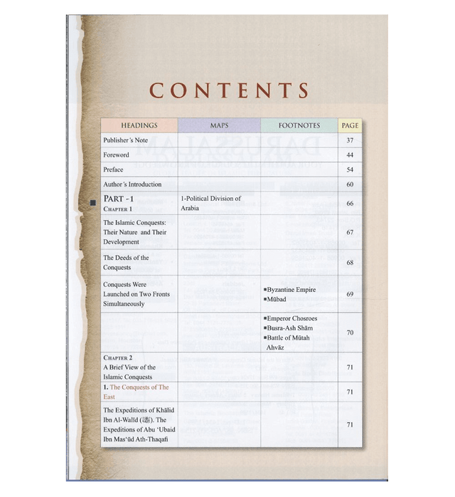 Periodic Golden History of Islamic Conquests - Atlas of the Islamic Conquests From the Caliphate of Abu Bakr رضی الله عنه to the Height of the Ottoman Caliphate. From Central Asia to Morocco, Spain and Central Europe. History is a mirror of the past days and nights of nations and communities. Hence the History of Islam is not only a mirror of the fourteen centuries of the Muslim Ummah but it also signifies the best Human Civilization on the face of the earth. So a stark necessity arises to acquaint new generation of Muslim Ummah with great intellectual and political leaders and renowned personalities along with such men of achievements and valiant heroes who defeated false forces in the battle fields in order to propagate the true religion in those lands where darkness and ignorance prevailed. "Atlas of the Islamic Conquests" has been prepared in view of the same lofty aim. In it are events of consecutive days, months & years of major Islamic Conquests, starting from the period of first Caliph Abu Bakr Siddiq رضی الله عنه to the reign of Ottoman Caliph Murad 3, have been described, with full color maps and unique snaps, in such a manner that the reader goes along with them and comes across wonderful historical happenings and new secrets of History are disclosed. Make thorough study of "Atlas of Islamic Conquests" yourself and motivate your children, kith and kins and friends to study it. This unique Atlas, having intrinsic and apparent beauty, is masterpiece of history and research and rich presentation for English readers.