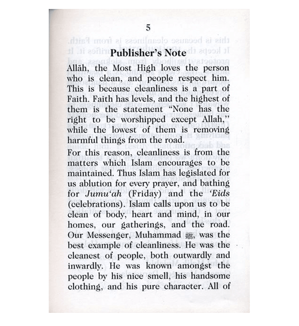 04CL1 Cleanliness is from Faith is a book by Darussalam Research Division. This book is of 48 pages. It presents the importance and virtues of cleanliness in Islam, and how closely it is related to Faith.