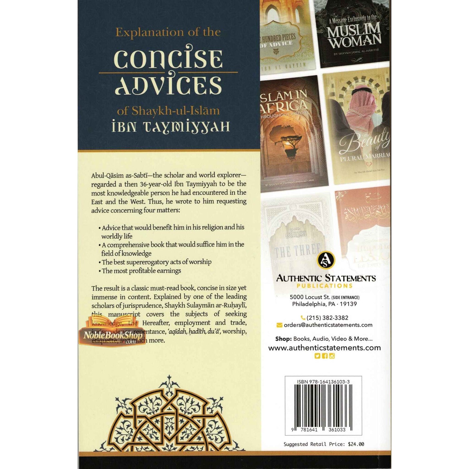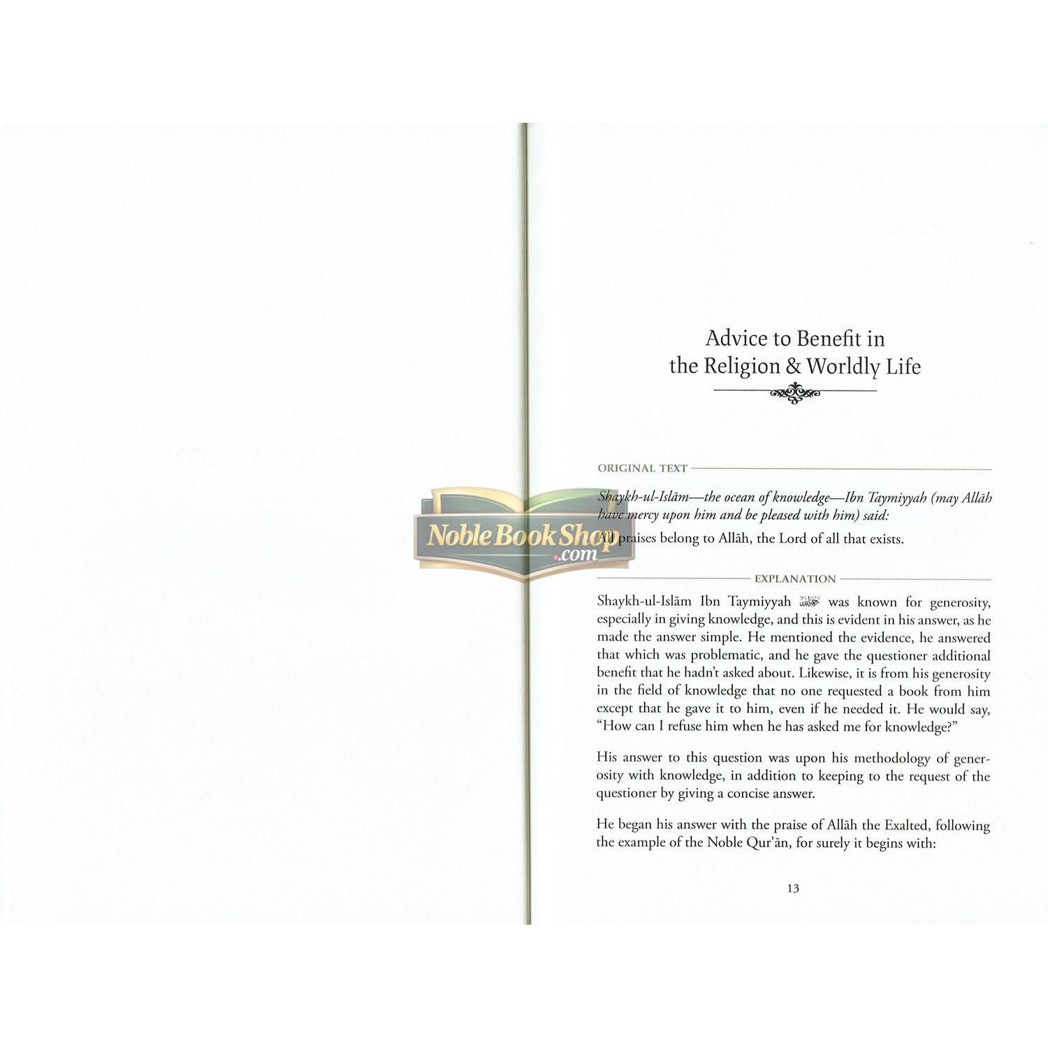 Abul-Qāsim as-Sabtī—the scholar and world explorer—regarded a then 36-year-old Ibn Taymiyyah to be the most knowledgeable person he had encountered in the East and the West. Thus, he wrote to him requesting advice concerning four matters: Advice that would benefit him in his religion and his worldly life A comprehensive book that would suffice him in the field of knowledge The best supererogatory acts of worship The most profitable earnings The result is a classic must-read book, concise in size yet immense in content. Explained by one of the leading scholars of jurisprudence, Shaykh Sulaymān ar-Ruḥaylī, this manuscript covers the subjects of seeking knowledge, the Hereafter, employment and trade, jurisprudence, repentance, ‘aqīdah, ḥadīth, du’ā', worship, etiquette, and much more.