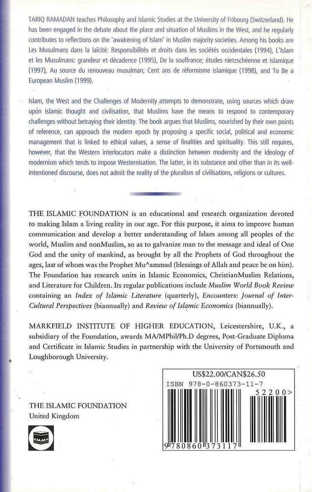 Islam, the West and the Challenges of Modernity attempts to demonstrate, using sources which draw upon Islamic thought and civilization, that Muslims have the means to respond to contemporary challenges without betraying their identity. The book argues that Muslims, nourished by their own points of reference, can approach the modern epoch by proposing a specific social, political and economic management that is linked to ethical values, a sense of finalities and spirituality. This still requires, however, that the Western interlocutors make a distinction between modernity and the ideology of modernism which tends to impose Westernization. The latter, in its substance and other than in its well-intentioned discourse, does not admit the reality of the pluralism of civilizations, religions or cultures.