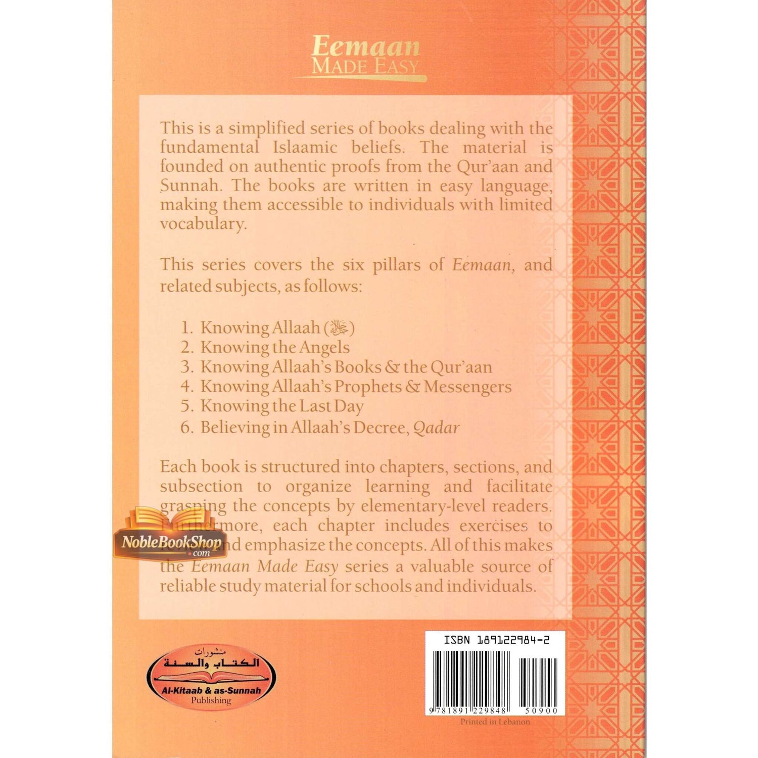 "Knowing Allah's Books & the Quran" is part of the Eemaan Made EASY series by Muhammad al-Jibaly, designed to simplify and teach the fundamentals of Islamic belief. This volume delves into the significance of Allah's divine books, particularly the Quran, explaining their role in guiding humanity. Written in a clear and accessible style, the book is ideal for both personal study and classroom use, helping readers of all ages and backgrounds grasp the importance of these scriptures in Islam.