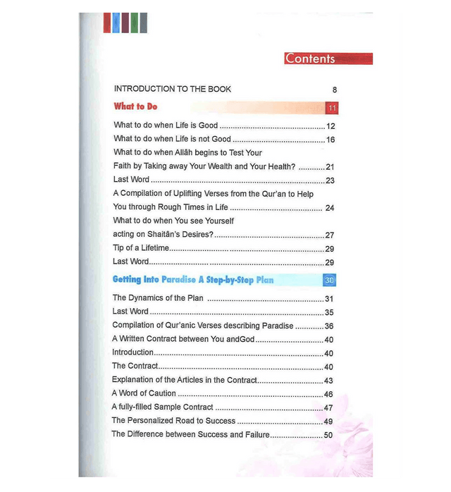 23A This book is divided into 5 chapters, and each chapter consists of several related life lessons derived from the Noble Qur'an. These lessons are meant to be as concise as possible, and at the same time as inspiring and helpful to the reader as possible. At a time when Muslims think twice before looking into the Qur'an for answers to their problems, I hope that this book of relevant life lessons from the Qur'an (that I was in immense need of during my teen years) will allow the Muslims of the 21st century to recognize the greatness of this miracle from God, and prevent them from making the same mistakes that I made during my life. I pray that Allah accepts this work from me and forgives me for any mistakes that may be present in this book, and I also pray that this book helps Muslims to come out of their 'days of ignorance'.