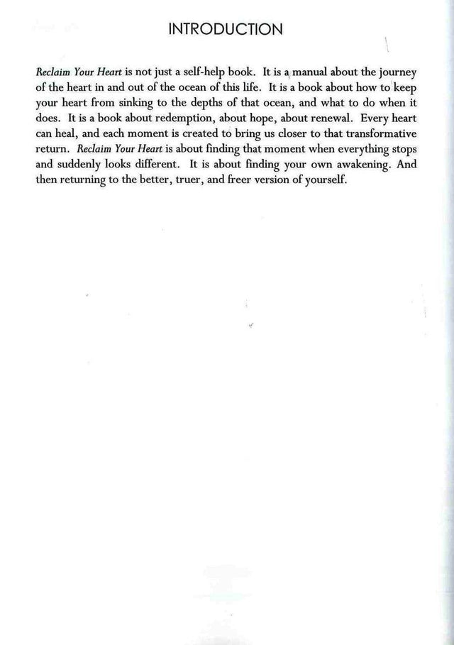 Reclaim Your Heart is not just a self-help book. It is a manual about the journey of the heart in and out of the ocean of this life. It is a book about how to keep your heart from sinking to the depths of that ocean, and what to do when it does. It is a book about redemption, about hope, about renewal. Every heart can heal, and each moment is created to bring us closer to that transformative return. Reclaim Your Heart is about finding that moment when everything stops and suddenly looks different. It is about finding your own awakening. And then returning to the better, truer, and freer version of yourself. Many of us live our lives, entrapped by the same repeated patterns of heartbreak and disappointment. Many of us have no idea why this happens. Reclaim Your Heart is about freeing the heart from this slavery. It is about the journey in an out of life’s most deceptive traps. This book was written to awaken the heart and provide a new perspective on love, loss, happiness, and pain. Providing a manual of sorts, Reclaim Your Heart will teach readers how to live in this life without allowing life to own you. It is a manual of how to protect your most prized possession: the heart.