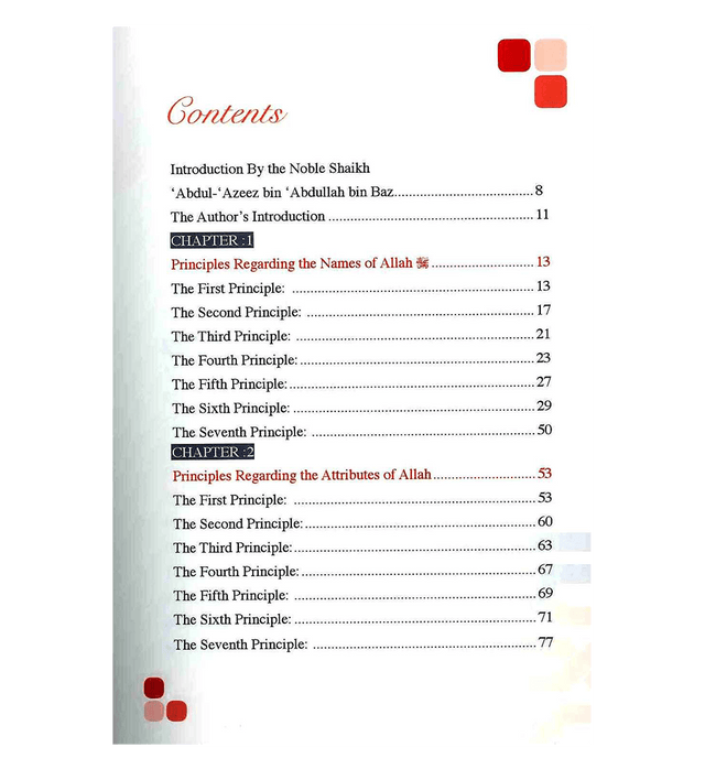 The pristine beliefs of the early Muslims are preserved in this vitally important masterpiece written by one of the most outstanding scholars of our time, Shaykh Muhammad Ibn Saalih al Uthaymeen. This new revised edition by Dar-us-Salam has been printed in full colour with hardback bounding for an excellent presentation. Seven clear principles and their evidences from the Book and the Sunnah guide the reader through the confusion and false claims of the ignorant to the clarity of belief in ALLAH's Names accomplished by the righteous early scholars of Islam. Principle 6 contains the shaikh's compilation of the ninety-nine (99) names of Allah. The names have been compiled into 2 categories: first from the Book of Allah & second from the Sunnah of the Prophet صلی الله علیه وآلهِ وسلم. All the names have been printed in Arabic with transliteration and English translation. Each name is printed beautifully in a square box with 6 boxes on a page. Seven more principles and their evidences follow, giving the reader firm understanding of the correct beliefs about ALLAH's Attributes. Four more principles outline the correct approach in studying the related proofs and evidences. All of this leads the reader into an enthralling series of refutations of the false notions of the Ash'aree sect, a text-by-text breakdown of how and why they went wrong in a careful and precise study of fifteen texts from the Book and the Sunnah. The beliefs of the Ash'aree sect are destroyed and the origins of their deviation are exposed for all to see. 'A magnificent book a clarification of the creed of the righteous Salaf concerning the Names and Attributes great principles and collective benefits concerning the topic' - Shaykh Ibn Baaz.