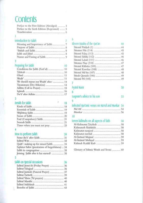 The important pillar of Islam, Salah (daily prayers) is explained in detail in this invaluable book. The aim is to acquaint young Muslims with the knowledge necessary to be able to perform this vital act of worship. The author sets out to achieve this with the use of diagrams, pictures, Arabic text and English transliteration. The intended age range is 10–16, although older people may also find it a useful aid to learning. This work, while suitable for young Muslims, is ideal for adults as a summary of the important features of salah (daily Muslim prayer). Attractively laid out with charts and pictures, the Arabic text is transliterated. The Children's book of Salah explains the necessary details of the second basic duty of Islam-As-Salah. It aims to acquaint young Muslims with the knowledge of how to perform Salah. In addition to the five daily Salah, there are chapters on Salah for special occasions, eleven Surahs of the Qur'an, and a selection of Qur'anic verses on Ma'ruf and Munkar. This book should be useful for young English-speaking Muslims, as well as those new to Islam.
