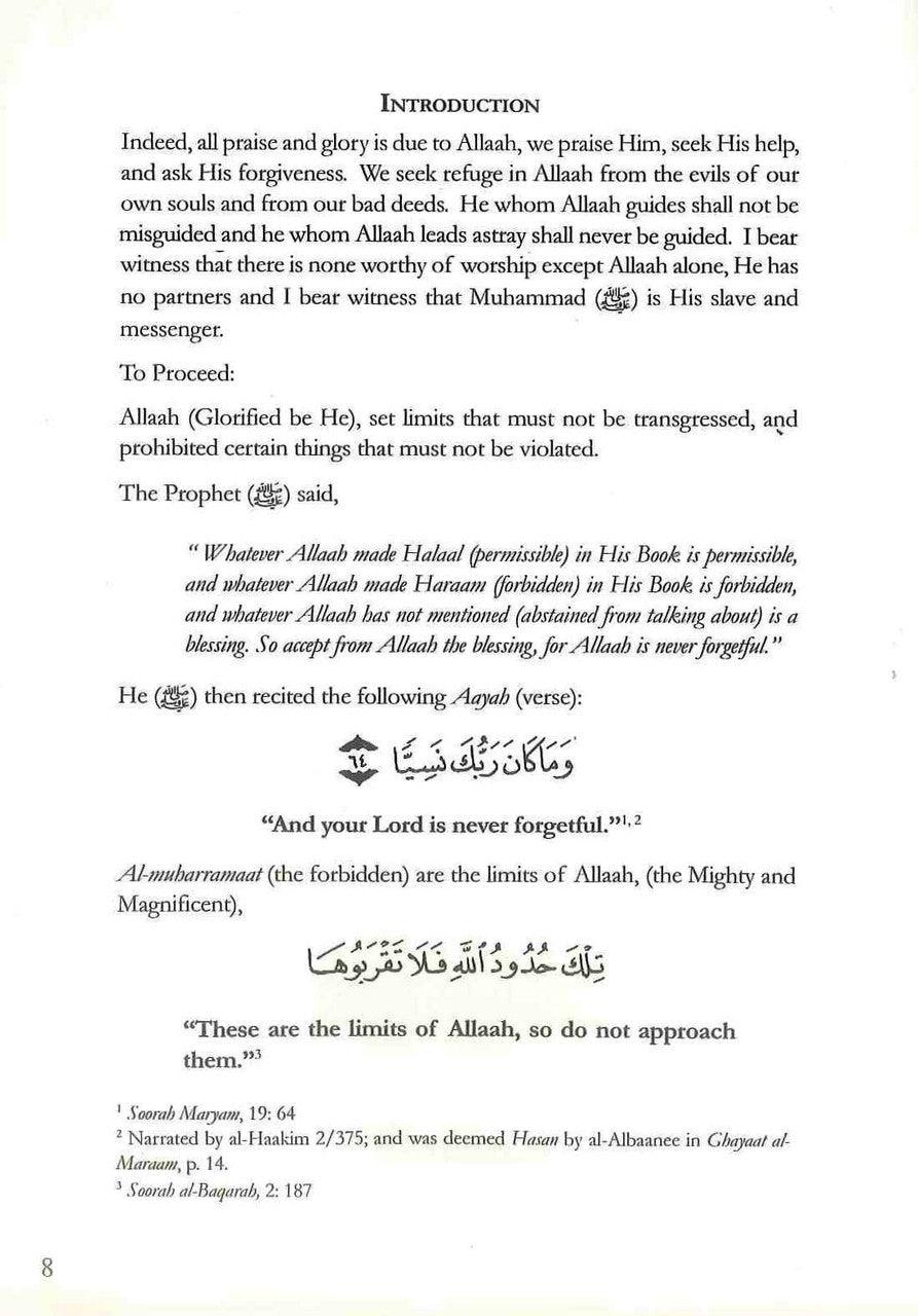 SL: 03DL2 Al-Muharramat (the forbidden) are the limits of ALLAH. ALLAH has threatened whoever transgresses His limits and violates His sacraments. In this treatise, the author enumerates numerous acts that transcend the bounds set by God almighty.