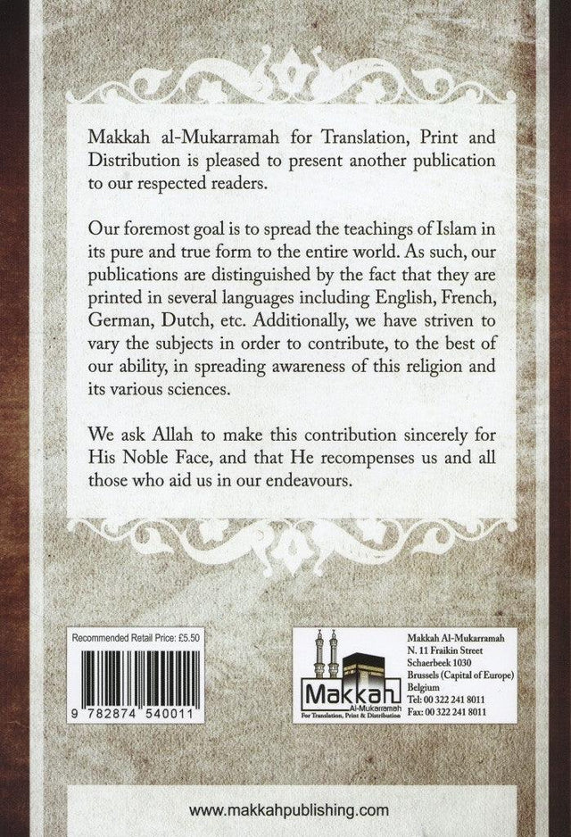 Makkah Al Mukarramah for translation, print & distribution is pleased to present another publication to our respected readers. Our foremost goal is to spread the teachings of Islam in its pure & true form to the entire world. As such, our publications are distinguished by the fact that they are printed in several languages including English, Francis, German and Dutch etc.