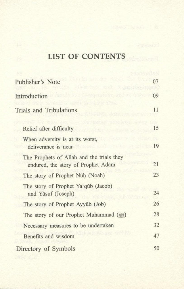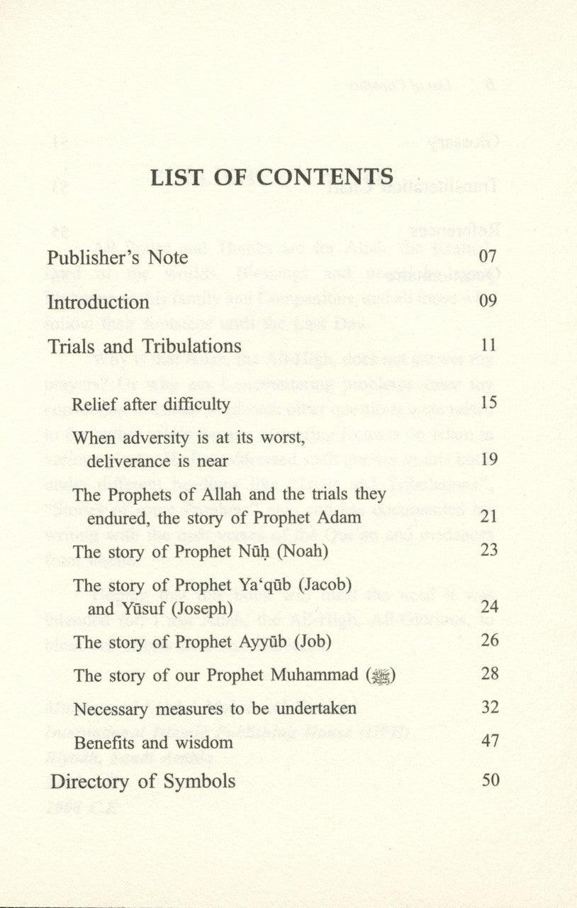 The theme of this book is relief after hardship, or as the old proverb has it, ‘Every cloud has a silver lining.’ The author, Sameh Strauch, explains this concept, describing, with evidence from the Qur’an and the Sunnah, why we are subject to trials and tribulations, and how, when adversity is at its worst, relief is near. He uses as examples the stories of the prophets and the trials they endured. Strauch then proposes measures to be undertaken to attain relief from difficulty, and explains the importance of tawakkul (depending upon Allah), the benefits and wisdom derived from the concept of hardship and relief, and much more. If you have ever been stricken by calamity and wondered why it happens, this book has the answer.