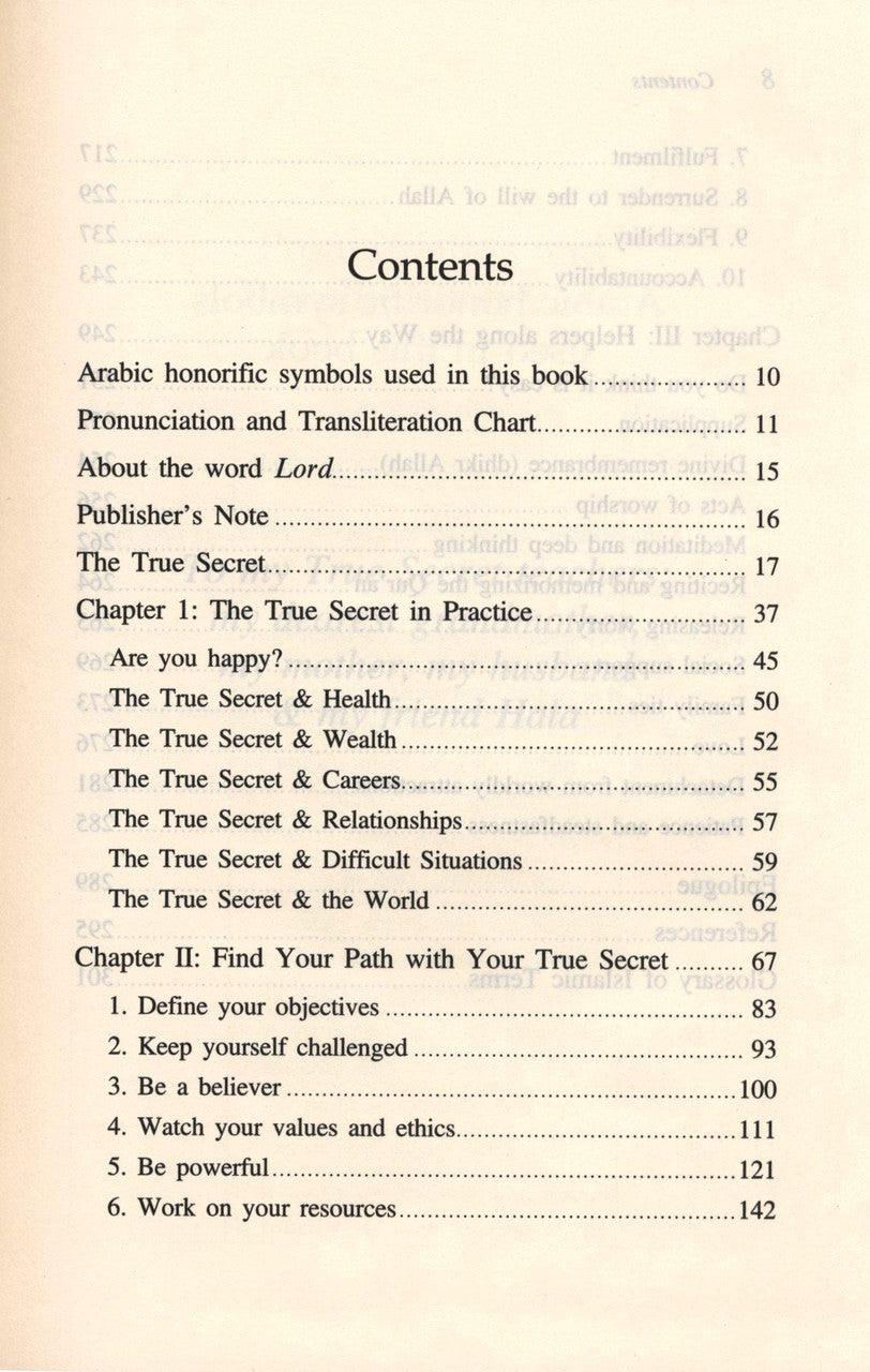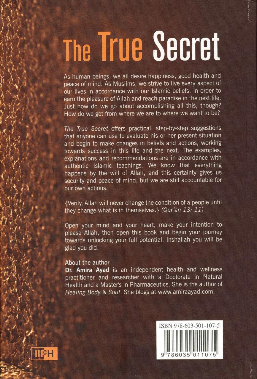 04B As human beings, we all desire happiness, good health and peace of mind. As Muslims, we strive to live every aspect of our lives in accordance with our Islamic beliefs, in order to earn the pleasure of Allah and reach paradise in the next life. Just how do we go about accomplishing all this, though? How do we get from where we are to where we want to be? The True Secret offers practical, step-by-step suggestions that anyone can use to evaluate his or her present situation and begin to make changes in beliefs and actions, working towards success in this life and the next. The examples, explanations and recommendations are in accordance with authentic Islamic teachings. We know that everything happens by the will of Allah, and this certainty gives us security and peace of mind, but we are still accountable for our own actions. ( Verily, ALLAH will never change the condition of a people until they change what is in themselves.) ( Qur’an 13: 11 ) Open your mind and your heart, make your intention to please ALLAH, then open this book and begin your journey towards unlocking your full potential. Inshallah you will be glad you did.