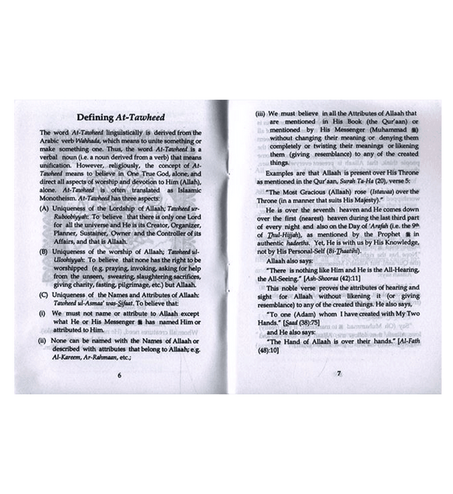 04CL1 Virtue of Tawheed and a Warning Against What Contradicts it is a book by Darussalam Research Division. This book defines Tauhid and its fundamentals. Having a strong faith in the oneness of Allah is a basic foundation of the religion of Islam and without it the religion cannot be complete. Therefore, it is very important for all Muslims to be aware of what Tauhid connotes, the definition of its opposite Shirk and its types, and why it is necessary to believe in Islamic monotheism. This book is of 32 pages.