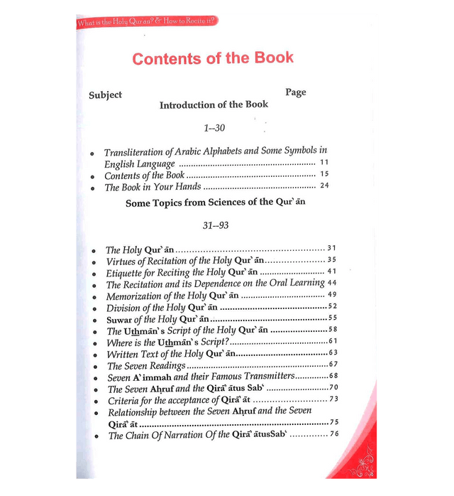 This book guides readers to pronunciate the Arabic alphabet from their correct point of articulations. It also guides them to recite the Holy Qur'an according to the laws and principles of the art of recitation and intonation. The correct pronunciation of the Arabic words and alphabet was difficult to some extent for the people living in the West as compared to those of East. So they need some more efforts to solve this problem and to make it easy for them. By the grace of ALLAH, this book will do the job successfully and in a very convenient way.