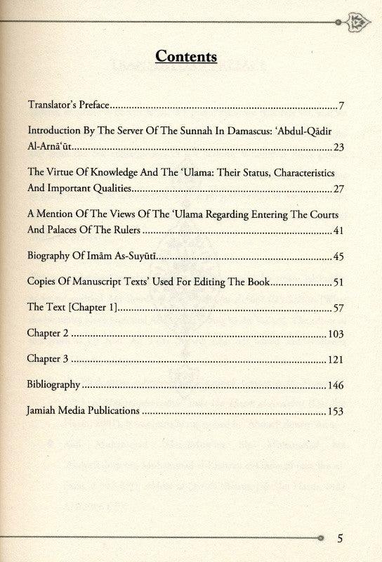 The author of this treatise is al-Hafidh as-Suyuti. He was pure, kind, righteous, pious and observant of his sustenance. The wealthy leaders would come and visit, him and present wealth to him which he would reject. Towards the end of his life he secluded himself away in his homes and occupied himself with knowledge and authoring until he was afflicted with an illness which ended with his death in 911 AH (1505 CE), may Allah have mercy on him, May Allah reward the editor of this work with the best of rewards and increase him in success in order to produce more of the likes of these valuable treatises from the books of the Sunnah which are a light and blessing for the Muslims. We ask Allah, the Most Blessed, to make this work sincerely for His Noble Countenance and our last supplication is that all praise is due to Allah, the Lord of the Worlds.