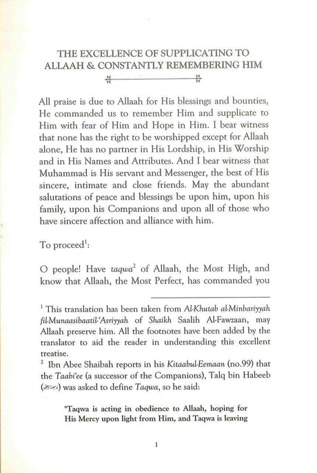 The Excellence of Supplicating to Allaah & Constantly Remembering Him