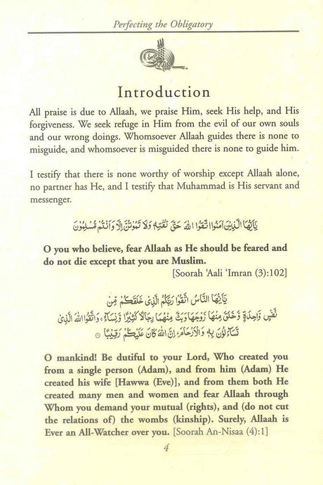 Perfecting The Obligatory : A Treatise on the Performance of the Sunnah Prayers