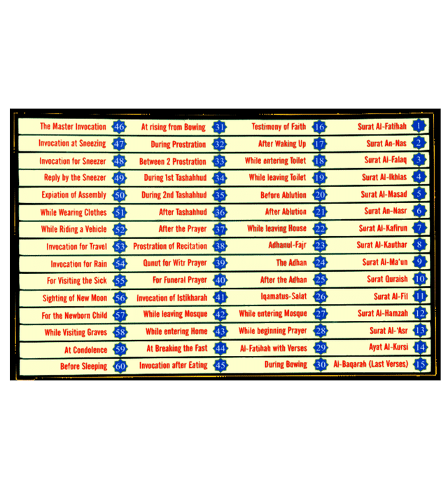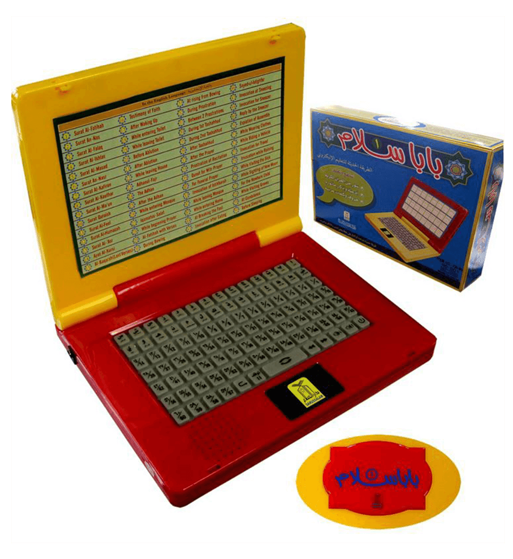 A new fun way to help yourself and your kids in memorizing Surahs of the Quran and Dua's (supplications). Each button on the laptop plays a different Surah or Dua'. New addition now includes the complete Arabic alphabets. Special Features • 60+28 touch buttons (each button plays a different Surah or Dua’) • 28 new buttons now include the complete Arabic alphabets. Press it once and it reads the Arabic letter, press it again and it spells out the Arabic word written under the letter. • Includes all daily Dua’s, last 14 Surahs, last verses of Surah Al- Baqarah, Salat, Dua’ Istekhara, Sayyadul Istighfar & many more (listed below on the screen shot). • Portable laptop size and shape • A specious gift for children and helpful for parents and teachers. • Very useful for incarcerated persons and those who have no access to correct pronunciation of the Arabic. • Makes and excellent gift • External adapter support • Requires 3 AA batteries • You can use rechargeable batteries to save money