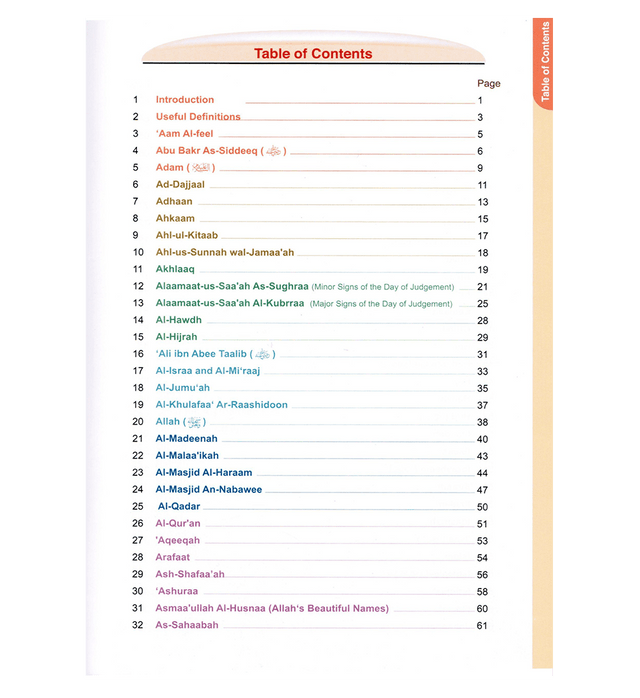 The present reference tool, which is a humble attempt to place before the English-speaking Muslim children a number of basic Islamic teachings and concepts, is primarliy aimed at children of ages ten years and over and presents topics in an easy to use alphabetical format. It also covers a wide range of topics and features cross references which draw attention to related subjects. Given the fact that some of these Islamic teachings and concepts have been forgotten by many Muslims, and given the fact that some of them have been given wrong definitions or interpretations by some non-Muslims, either deliberately or out of ignorance, an effort has been made here to present these teachings and concepts in their true light and clear picture. The definitions cover a wide range of concepts as well as some of the well known Prophets and Messengers of Allah, may Allah's peace be upon them all, the significance of certain important Islamic occasions, the benefits of the observance of certain practices and a short biography of the four rightly guided caliphs who helped shaped the destiny of the new faith. Even though the present reference guide is designed specifically for Muslim children, readers and students of all ages and different faiths who wish to learn about the world's fastest growing religion will certainly find it enlightening and highly informative.