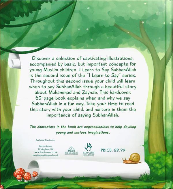 Discover a selection of captivating illustrations, accompanied by basic, but important concepts for young Muslim children. I Learn to Say SubhanAllah is the second issue of the "I Learn to Say" series. Throughout this second issue your child will learn when to say SubhanAllah through a beautiful story about Muhammad and Zaynab. This hardcover, 60-page book explains when and why we say SubhanAllah in a fun way. Take your time to read this story with your child, and nurture in them the importance of saying SubhanAllah. The characters in the book are expressionless to help develop young and curious imaginations.