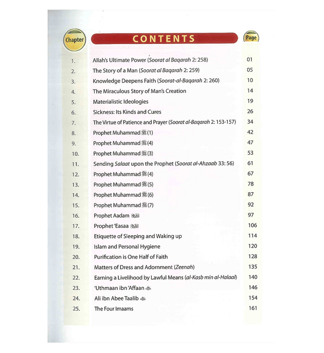 SL:04CL3 Given the dire need for Islamic studies material in schools incorporating the subject in English,. Darussalam has endeavoured to publish an Islamic Studies series covering all the grades, from grade one through grade twelve. This series covers all areas of Islamic studies: tafseer, hadeeth, tawheed, fiqh, seerah, and general etiquette relating to different areas and situations. Given the importance of authentic Islamic knowledge, every effort has been made to ensure that the material presented in the series is authentic. Also, given the importance of Arabic Islamic terms, most of the terms are presented in their original Arabic script, along with the transliteration and the translation of their meanings. This also applies to supplications which have to be memorized in their Arabic version. The aim here is to help the reader read the original text and understand its meaning. Each lesson is followed by exercises covering questions about the lesson. One striking feature in the series is the colorful artwork used in it will certainly appeal to children. This is certainly bound to attract the young readers' attention, stimulate them, amuse them as well as educate them. This series aims to acquaint the student with the teachings of Islam in every aspect: beliefs, practices and moral conduct. This series, with its unique features, certainly fills a gap in this area which has long been partially neglected. The present breathtaking work was initiated by an expert in the field of education, Maulvi Abdul Aziz, MA. English literature, who held different posts in the field including that of Senior Administrative Officer in the Department of Private Education, Ministry of Education, Dubai, UAE, from 1982 to 2002.