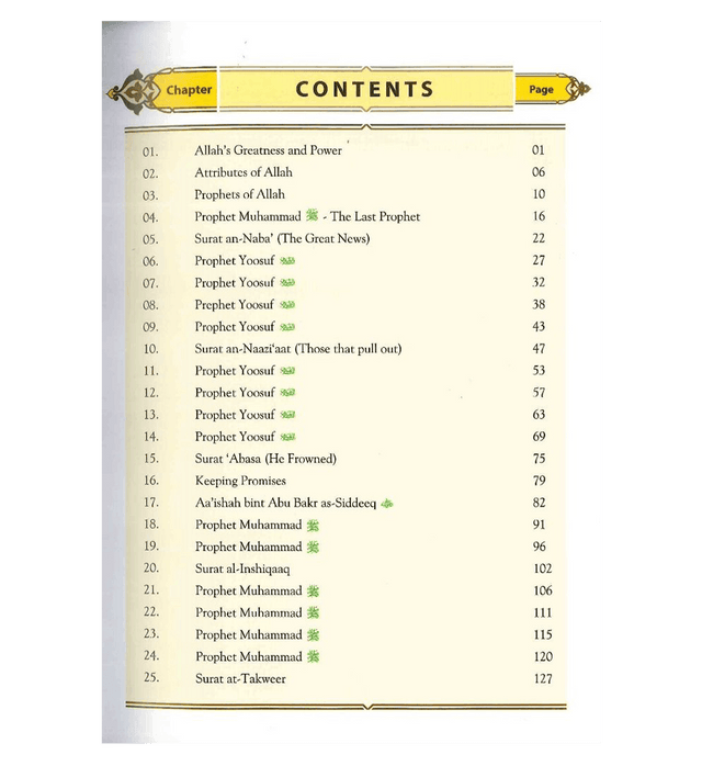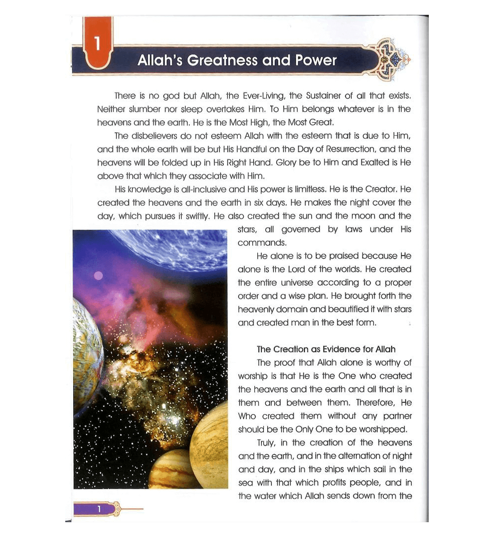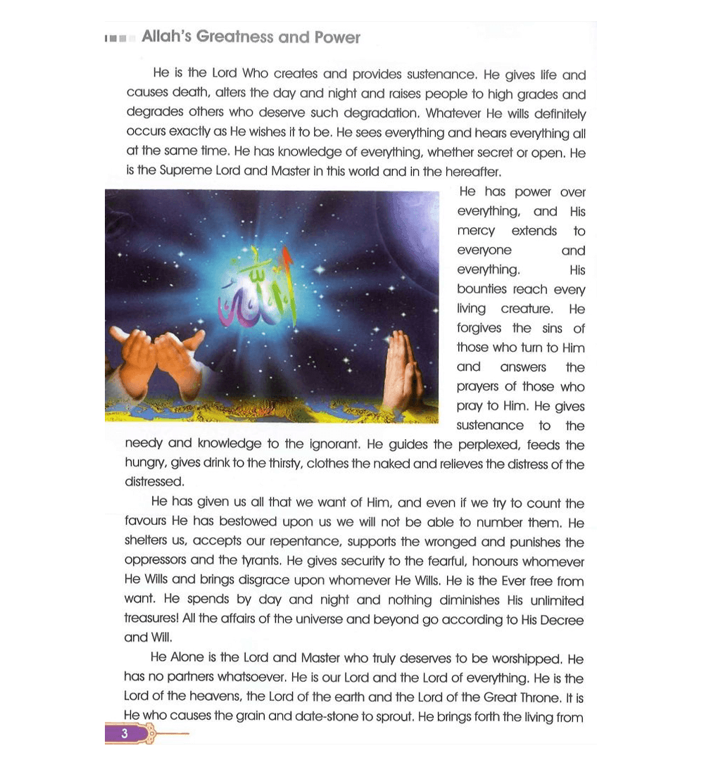 SL:04CL3 This is set of 6 books from the Islamic Education Series. Given the dire need for Islamic studies material in schools incorporating the subject in English,. Darussalam has endeavoured to publish an Islamic Studies series covering all the grades, from grade one through grade twelve. This series covers all areas of Islamic studies: tafseer, hadeeth, tawheed, fiqh, seerah, and general etiquette relating to different areas and situations. Given the importance of authentic Islamic knowledge, every effort has been made to ensure that the material presented in the series is authentic. Also, given the importance of Arabic Islamic terms, most of the terms are presented in their original Arabic script, along with the transliteration and the translation of their meanings. This also applies to supplications which have to be memorized in their Arabic version. The aim here is to help the reader read the original text and understand its meaning. Each lesson is followed by exercises covering questions about the lesson. One striking feature in the series is the colourful artwork used in it will certainly appeal to children. This is certainly bound to attract the young readers' attention, stimulate them, amuse them as well as educate them. This series aims to acquaint the student with the teachings of Islam in every aspect: beliefs, practices and moral conduct. This series, with its unique features, certainly fills a gap in this area which has long been partially neglected. The present breath-taking work was initiated by an expert in the field of education, Maulvi Abdul Aziz, MA. English literature, who held different posts in the field including that of Senior Administrative Officer in the Department of Private Education, Ministry of Education, Dubai, UAE, from 1982 to 2002. The current project also owes its existence in its present form to a number of people who made informative suggestions, particularly Al-Arabee Ben Razzouq, College of Languages and Translation, Imam Muhammad ibn Saud University, Riyadh, who undertook the painstaking task of checking the authenticity of the material presented in the series, proofreading the text as well as adding references to certain quotations from the Qur'an and the hadeeth. Special thanks also go to Sheikh Abdul-Qawiy Luqman, Al-Madeenah University graduate, for his interesting suggestions and to Mr. Zulfiqar Mahmood who conscientiously applied his expertise in the field of graphic design to produce the series in a superb shape. We pray to Almighty Allah to reward our endeavours and to make the present series abundantly beneficial to students in all stages of education as well as to anyone who reads them. Abdul Malik Mujahid Jumaadaa ath-Thaaniyah, 1428 AH. July 2007.