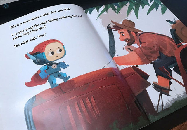 Another of Zanib Mian's mainstream titles - The Robot That Said Moo is a delightful story, which children request time and time again! A robot is lost, and when a farmer on a tractor, a dentist on a bike, a banker in a car, a plumber on foot, stop to help him, all he can say is, 'moo.' Whatever does he mean, and how will he get home? A lovable young boy called Elias, finally proves that the solution to a problem isn't always as clear as we think it is.