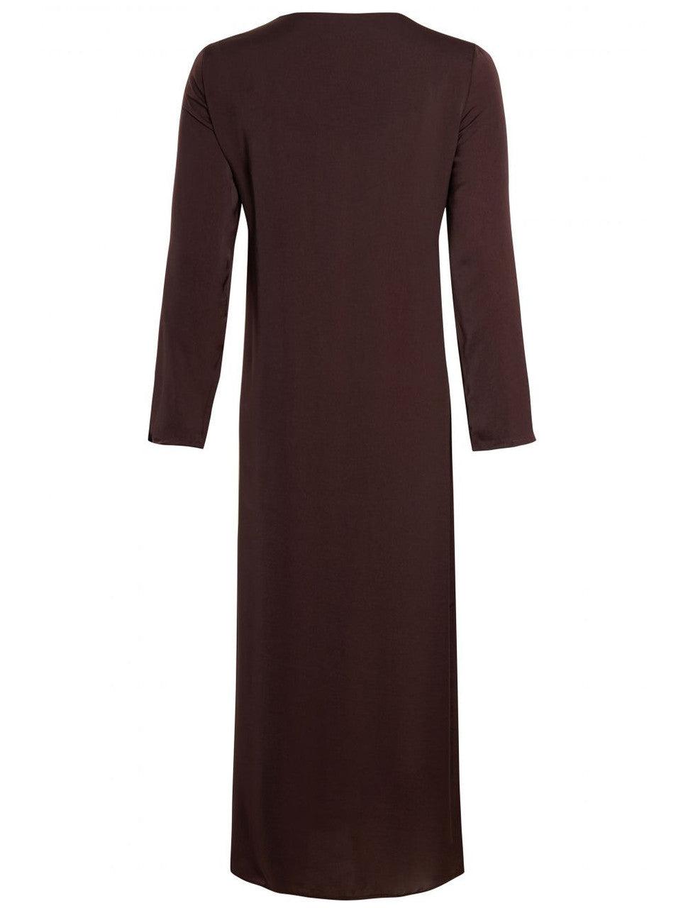 A perfect long sleeved necessity to wear beneath your abaya and kimonos to give you a more streamlined look as well as reduce any bulk. The silk textured fabric compliments any over piece. Simply slip this on and feel more secure.
