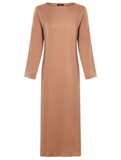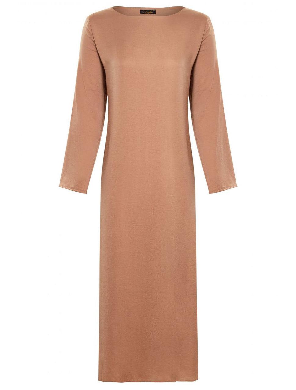 A perfect long sleeved necessity to wear beneath your abaya and kimonos to give you a more streamlined look as well as reduce any bulk. The silk textured fabric compliments any over piece. Simply slip this on and feel more secure.