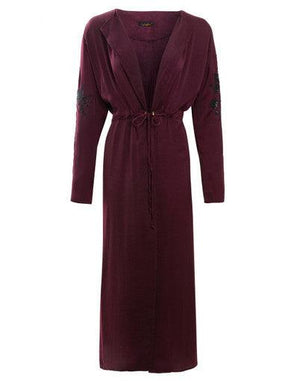 PLUM EMBOSSED KIMONO is backordered and will ship as soon as it is back in stock.
