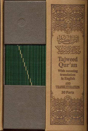 Tajweed Quran 30 Parts Set in Leather case – with English Translation and Transliteration (A4 Size-17x24) (Uthmani Script)
