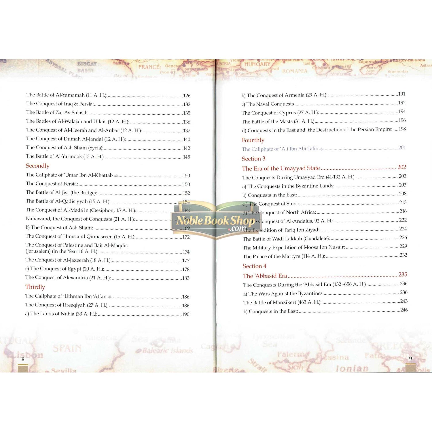 It also includes the military events and the accompanying da'wah (call to Islam), beginning from the era of the Messenger of Allah ^, and becoming more prominent in its own sense during the era of the Caliphate Abu Bakr As-Siddeeq ^ and continued throughout the eras of the righteous Caliphs who succeeded him, and the other different Islamic eras that came after them, such as the Umayyads, the 'Abbasids, the Ayyubids, the Mameluks, the Ottomans and other Islamic states that followed them or were contemporaneous with them. It is also appropriate to include significant defensive operations in the events of the conquests whose aim was to repel enemies and protect previous conquests.