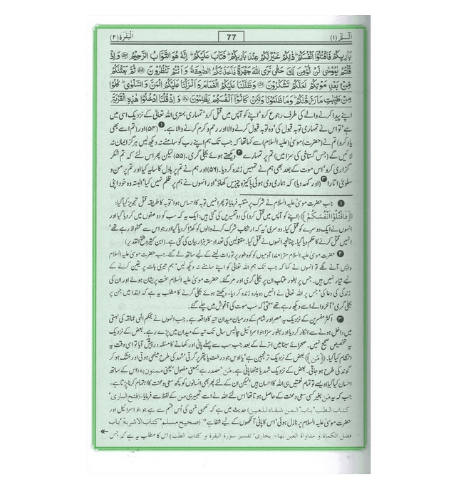 Tafseer Ahsan-ul-Bayan with Arabic Quran Text on top, Urdu translation in the middle and tafsir on bottom as footnotes. (Large)