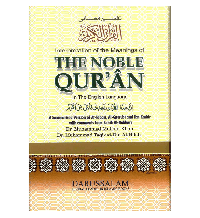 Interpretation of the meanings of the Noble Qur'an with Arabic text in the modern English language. A summarized version of At-Tabari, Al-Qurtubi and Ibn Kathir with comments from Sahih Al-Bukhari. This 1 volume summarized version offers brief commentary and Ahadith wherever necessary. This unique combination of commentary and relevant Ahadith makes this a very useful study reference tool.