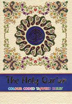 22A A color-coded Qu'an in an Arabic script that is easy to read for the non-Arabic speaking person as well. Seven different-color shades have been used: each color representing a different tajwid rule. Letters are coloured according to the corresponding tajweed rule. The actual rules of tajwid in English are included in the back of the Quran. This edition of the Qur'an can help those who desire to recite the Qur'an correctly with the proper pronunciations and intonations.