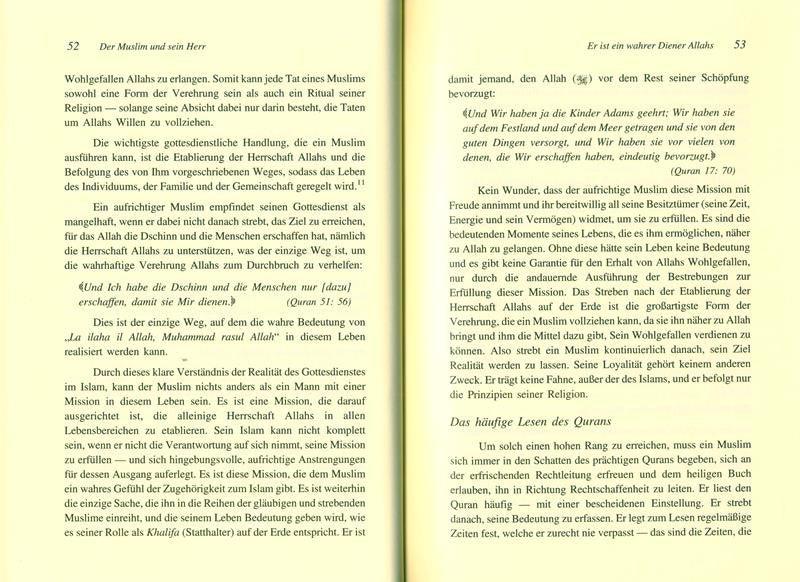 Der ideale Muslim ist ein Mann, der mit den höchsten moralischen Tugenden ausgestattet ist. In seiner Beziehung zu seinem Herrn und in seinem Umgang mit sich selbst, der Familie, den Eltern, den Verwandten, den Freunden und der Gesellschaft als Ganzes hat er das vortreffliche Vorbild des Propheten des Islam (Allahs Segen und Friede seien auf ihm) vor Augen. Sein Idealismus wird weiterhin durch die Eigenschaften der ersten Generation der Muslime gestärkt, die sich in den verschiedensten Lebensbereichen auszeichnete. Er rückversichert sich bei den Lehren des Islams, so dass er diese edle Höhe erreichen kann, indem er an sich selbst arbeitet, um seinen Charakter täglich zu verbessern.