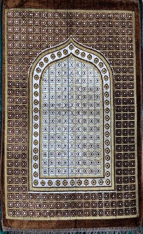Cut Work Pray Mat Golden Brown Good Quality Polyester • These prayer mats are good quality. Produced by the world famous Turkish rug and carpet company, Mihrab, NOTE: Design may differ slightly too displayed product. Colour may vary slightly due to effect of photographic process when edited the image.