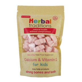 - For strong bones and teeth. - One a day food supplement. During childhood and adolescence, the body uses the mineral calcium to build strong bones so a balanced diet including calcium and vitamin D is important to ensure our children grow up with strong bones and healthy teeth. Many studies show that low calcium intake is associated with low bone mass and high fracture rates. To absorb calcium, the body needs vitamin D. 40 x gummies. Made from certified halal gelatine. See reverse label on images for full ingredients and nutritional information. Packed in handy, stay fresh pouches ... trendy, practical and easy to take on the go.